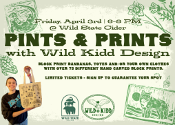 Join Anna from Wild Kidd Design for a fun and relaxed DIY block printing session paired with your favorite cider at the beautiful Wild State Cider Taproom.