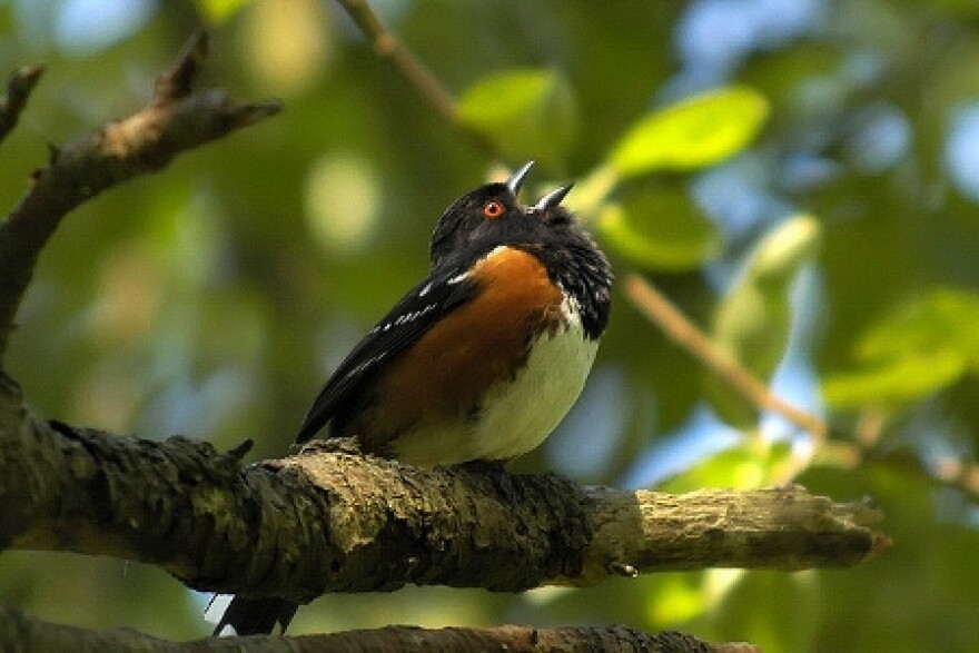 Larry Weber talks with us this morning about the imminent arrival of spring. Some new buds and leaves are appearing in the smaller shrubs, and he's seen some fiddleheads as well. Among the returning birds are the hermit thrush, the Louisiana water thrush and the towhee (pictured). Also, signs of activity from the ground squirrels, moles, dragonflies and snakes.